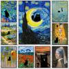 "Cuadro famoso de la Mona Lisa, Noche estrellada con un divertido gato negro, póster de metal, placa de hojalata, arte de pared, decoración para el hogar, la sala de estar y el dormitorio. — compra barato en la tienda en línea Joom