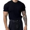Camiseta Deportiva de Verano para Hombre Hilo de Punto Elástica Cuello O Ajuste Slim Color Sólido Manga Corta Jersey Entrenamiento Gimnasio Top de Entrenamiento