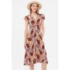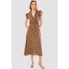 Vestido midi beige para mujer, cuello cruzado, volantes en los hombros, cintura elástica, largo midi, mangas 24y001020 — ¡comprar productos online con envío gratuito a cualquier país del mundo!