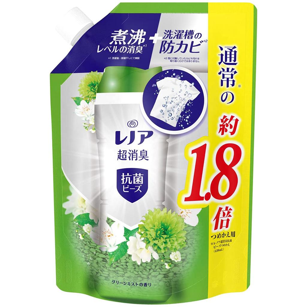 Lenor Super Deodorizing Antibacterial Beads Green Mist Refill + Approx. 1.8x (760mL)