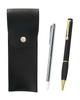 Slim cowhide pen case black with metal indicator and lasting piece metal rotating ballpoint pen set black ASB-701S-TK23-B