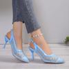 Fashion 2025 New Women High Heels Sandals Rhinestones Closed Toe One-line Sandals Pointed High Heels Versatile Back Empty Single Shoes
