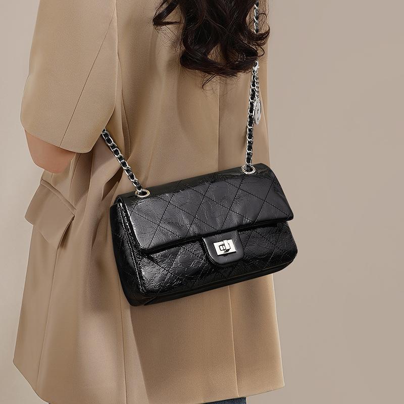 Bag Leather Women'S Bag Crossbody Bag Light Luxury Premium Sense Niche Rhombus Chain Bag Luggage