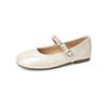 Zapatos casuales de suela plana versátiles con cabeza redonda francesa y pliegues de boca poco profunda, zapatos Mary Jane con cinturón de palabra de taladro feng shui de temperamento