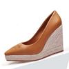 Zapatos de esparto para mujer cuñas plataforma punta fina tacón alto para dama bombas fiesta boda comodidad casual