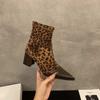 Designer Leopard Print Women Ankle Boots Pointed Toe Short Booties Concise Patchwork Thick Heels Pumps Botas De Mujer