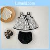 Pattern Floral Sweet Bow Shoulder Strap Design Kid Summer Top And Set Shorts