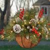 Cestas Colgantes de Navidad Pre-Iluminadas Cesta Artificial con Luces LED Piñas Bayas Invierno Macetero Exterior para Exterior Porche Decoración Puerta Principal