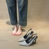 Fashion French Classic Grey Women Pointed Toe High Heel Sandals Open Back Slim Strap Party Commuter Versatile Shoes