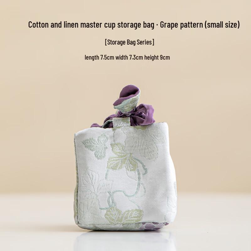 Shangqi Cotton Linen Grape Pattern Tea Cup Storage Bag Set