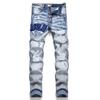 New And Collection Street Style Blue Distressed Patchwork Washed Elastic Slim Fit Mens Jeans Model 3606-1