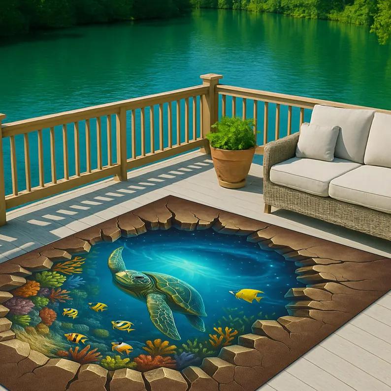 "3D Turtle Rug Ocean Hole Illusion Carpet Marine Life Mat Underwater Scene Rug Coral Reef Deep Sea Room Accent Aquatic Blue Rug — compra barato en la tienda en línea Joom