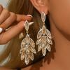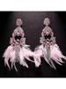 1 pair Pink Feather Exaggerated Earrings with Tassel Pendant Women's Wedding Bohemian Jewelry Sparkling Big Water Diamond Earrin