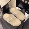 Birkenstocks, slippers, small fragrant soft-soled bag head, half slippers are not tired, versatile feet, round head, Korean version lace