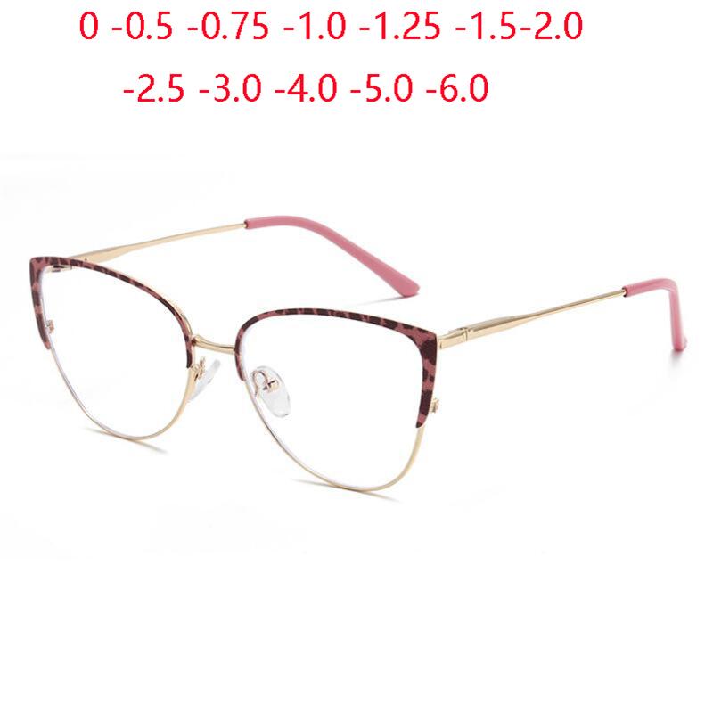 Blue Light Blocking Women Cat Eye Nearsighted Glasses Metal Leopard Frame Short-Sight Eyeglasses Diopter 0 -0.5 -0.75 To -6.0