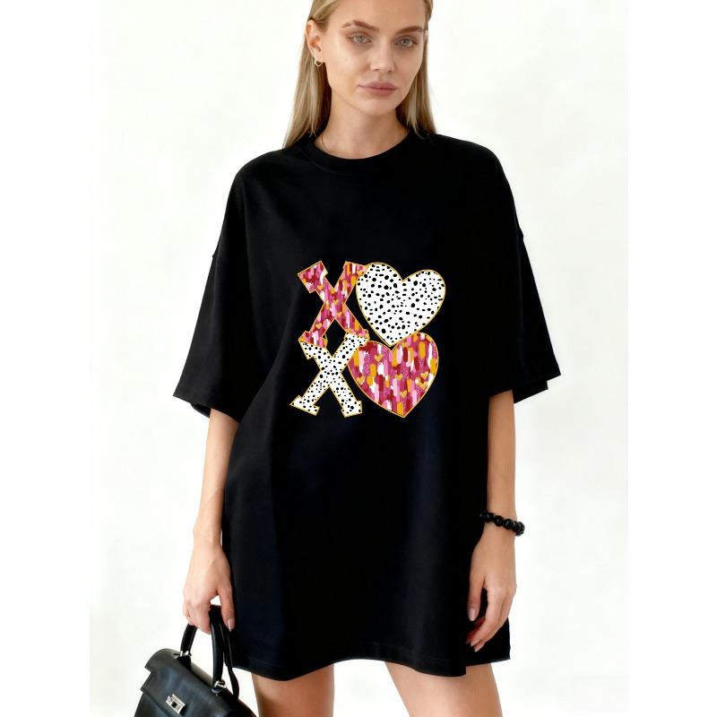 "Oversized T Shirt Dress Black Xo Heart Print With Leopard And Dalmatian Patterns Casual Wear For Women — compra barato en la tienda en línea Joom