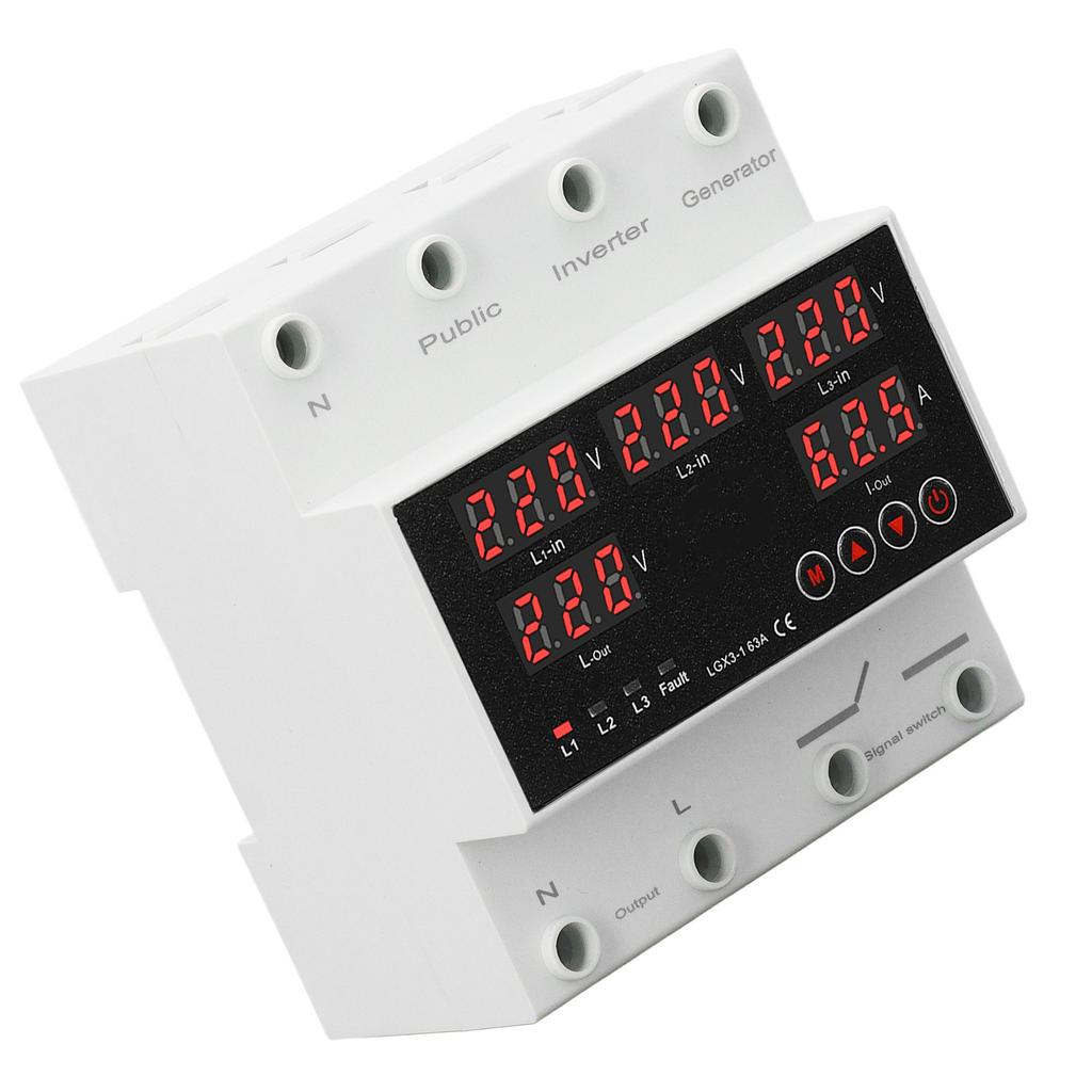 3 Phase 4 Wire Automatic Transfer 63A Changeover Voltage Protector with LED Display Generator and Inverter