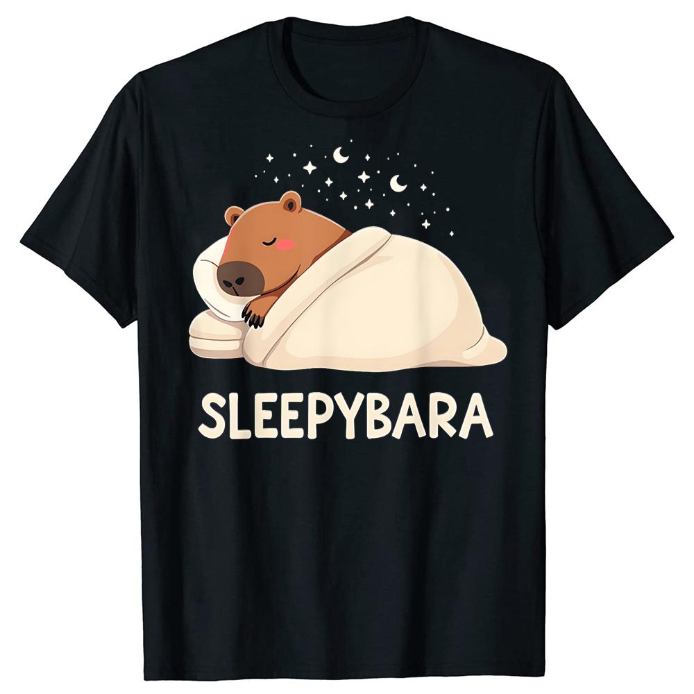 Capibara Durmiendo Sleepybara Camisetas Streetwear Manga Corta Regalos de Cumpleaños Ropa para Hombre Moda Casual Suelta Camiseta Oversize