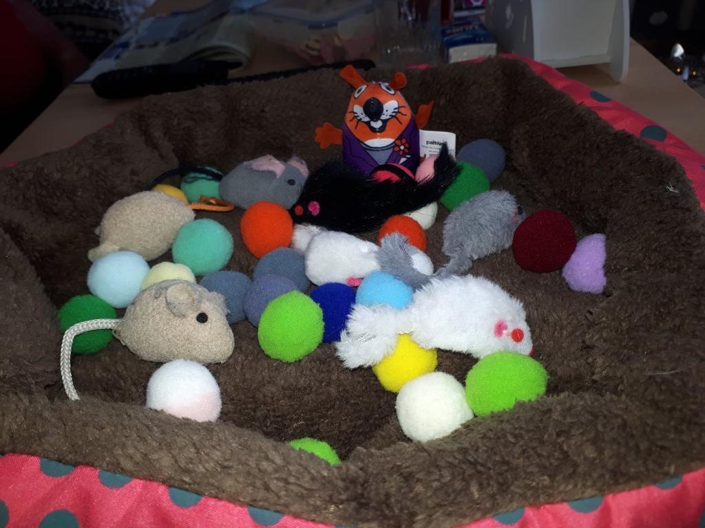 Väikesed pehmest kangast pallikesed, mis kassid hästi kinni hoiavad. Kõik pallid on põrandal, kogu ruumis on hullus.