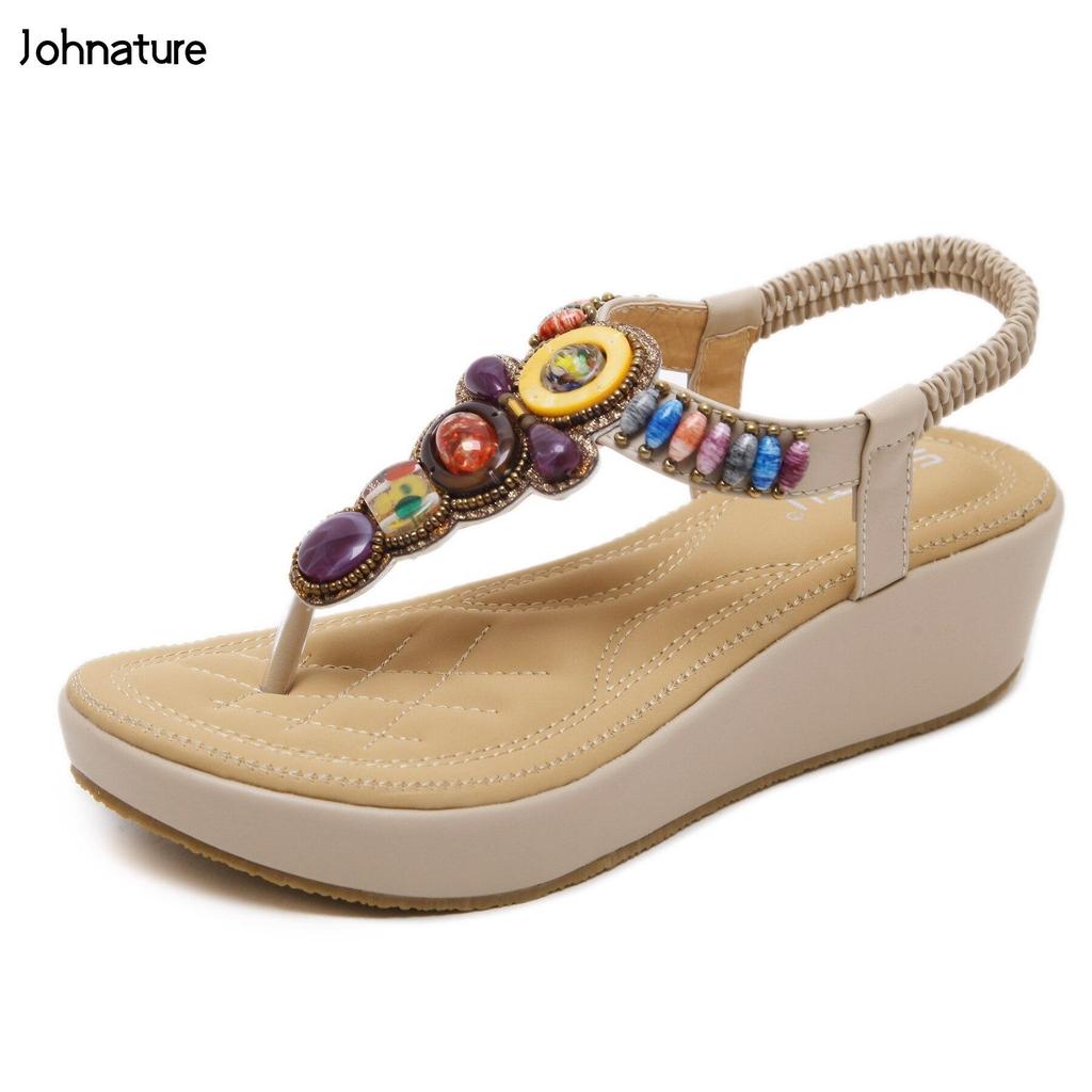 Vabaaja kummipael, tugeva platvormiga sandaalid etnilised stringid helmestega seljarihm, kiilud, kristallist naiste kingad