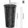 Bling Rhinestones Thermal Cup Stainless Steel Insulated Tumbler with Lid And Straw Sparkling Rhinestones Water Bottle Gift for Valentine's Day