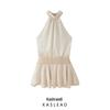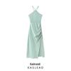 Spring 2025 Women's Fashion: European & American Style Backless Halterneck Silk Satin Short Dress