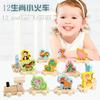 Children's Wooden Train with Numbers and Chinese Zodiac Signs