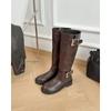 Cowhide~ Genuine leather thick-soled knight boots women's belt buckle boots autumn and winter retro long boots wide tube thin high boots — ostke Joom e-poes odavalt