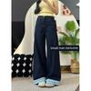 Real Shot American Letters Embroider Bows Gingham Color Contrast Patchwork Denim Summer Loose Wide Leg Mop Pants