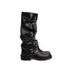Small Size Boots Black Pants Boots Women's Vintage Fried Street Spice Girls Square Head Skinny Belt Buckle Thick Heel Folded Tube Boots — ostke Joom e-poes odavalt