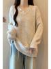 French Pink V-neck Long-sleeved Sweater for Women Winter Mid-length Soft Waxy Design Sweater
