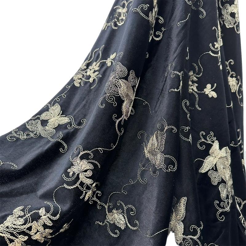 Black Color Flower Printed Embroidered Velvet Fabric African Jacquard Fabrics for Cheongsam Dress Clothing 130cm Width