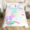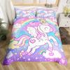 Unicorn Bedding Set Kids Purple Space Galaxy Duvet Cover Microfiber Quilt Cover Girly Cartoon Comforter Cover and 2 Pillowcases