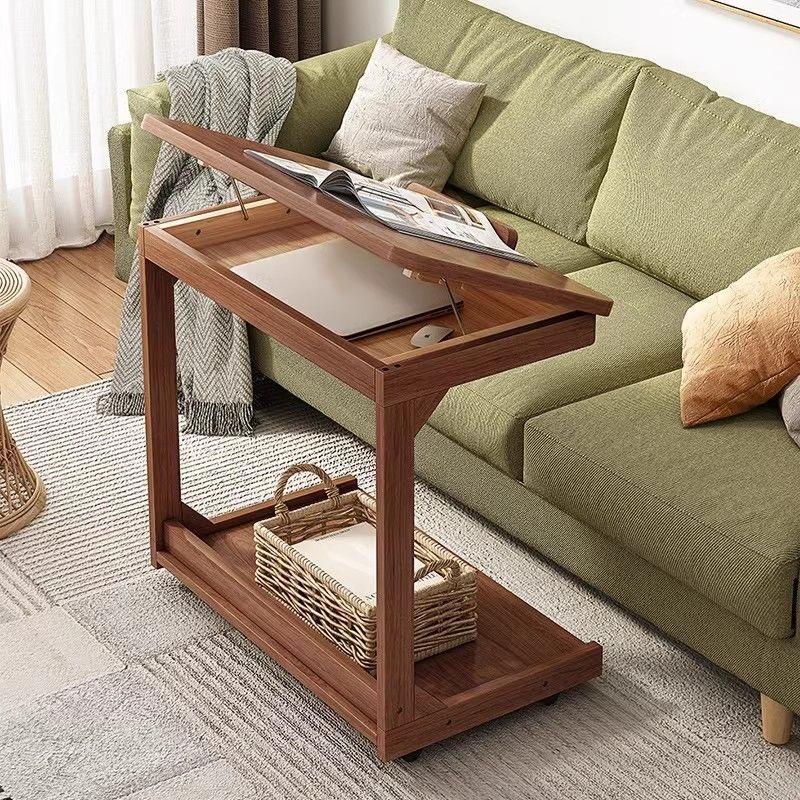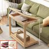 Height adjustable Solid Wood Side Table Sofa Bedside Laptop Desk For Living Room Bedroom Study Writing Book Shelf Organizer