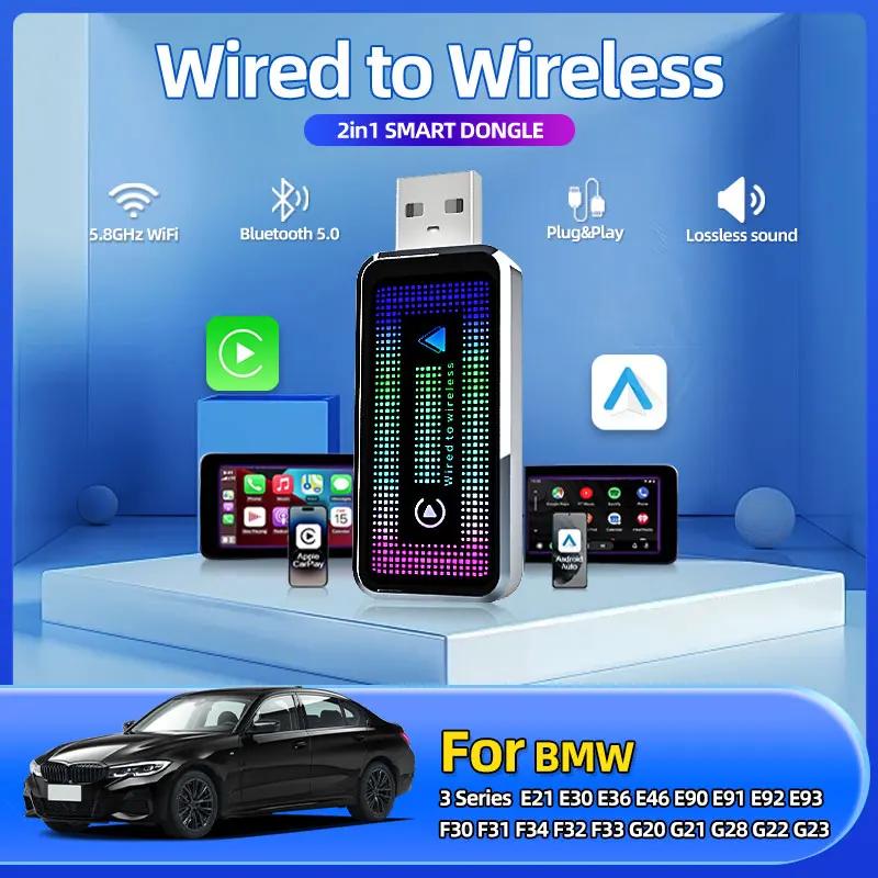 2025 Hot 2in1 Wireless CarPlay Android Auto Wireless Smart Dongle Mini Box Plug And Play For BMW 3 Series E21 E30 E36 E46 E90