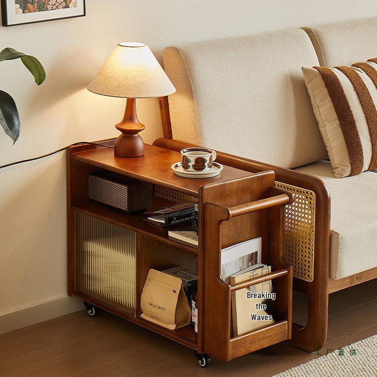 Solid Wood Retro Trolley: Movable Side Table & Snack Cart