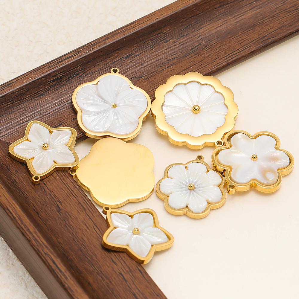 3pcs Stainless Steel Flowers Flat White Shell Charms for DIY Women Jewelry Necklace Findings Earrings Pendant Making Supplies