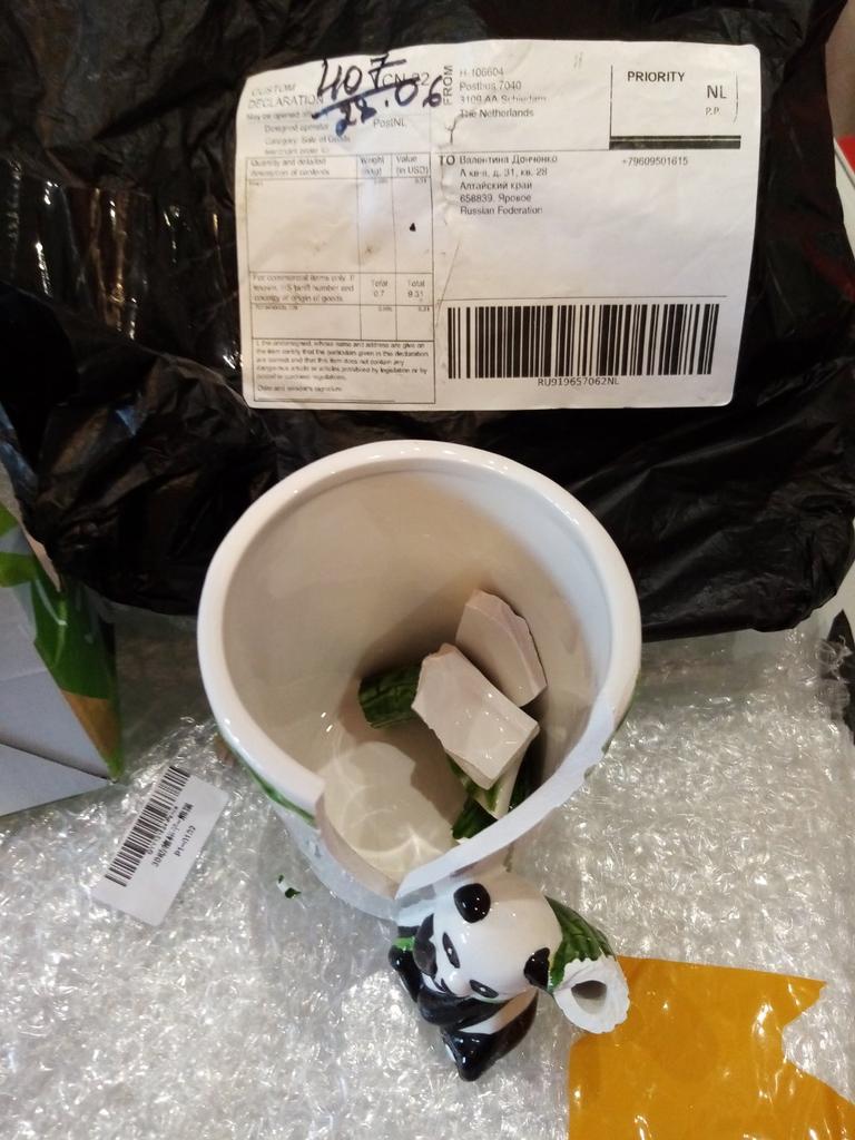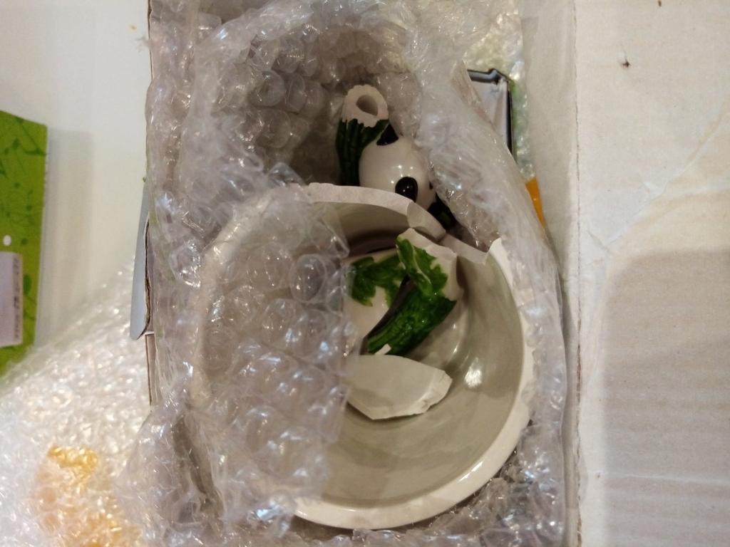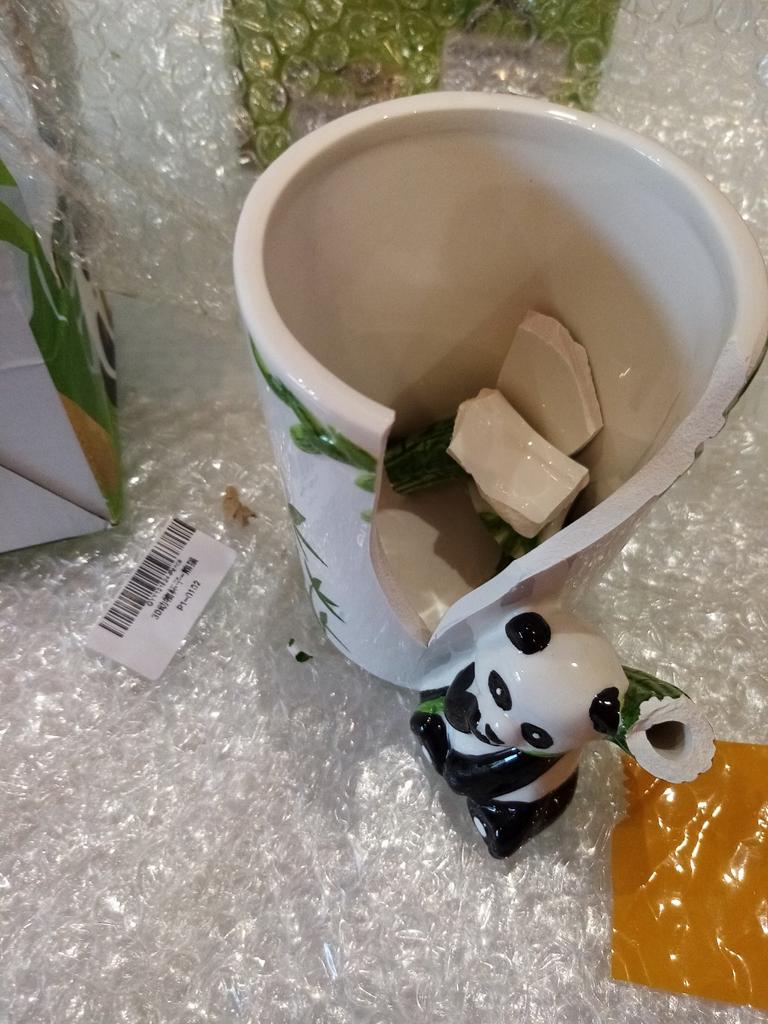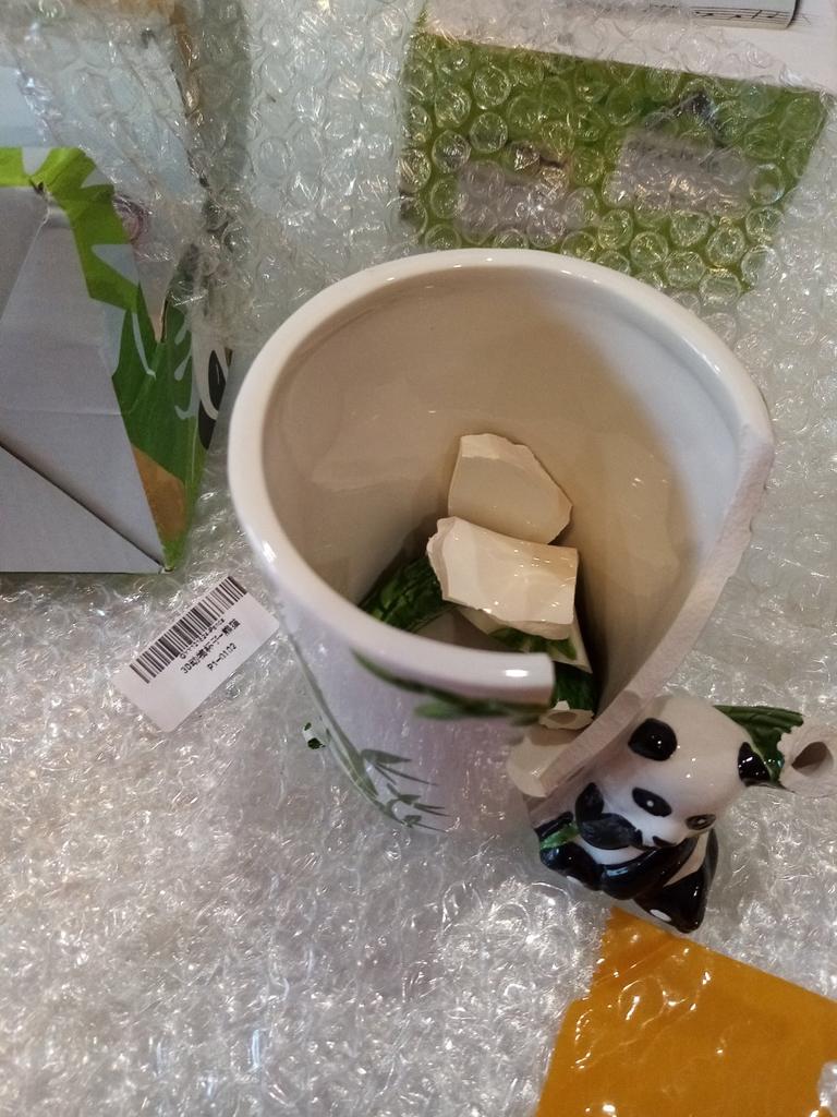La tasse est arrivée cassée. Regarde la photo