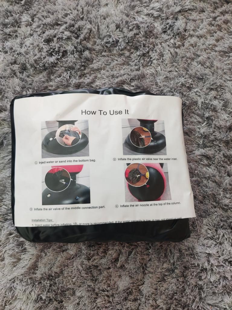 Article très intéressant. Il est arrivé rapidement et est très facile à assembler. J'ai utilisé de l'eau pour le poids, mais le sable peut également être utilisé. Seul "défaut", il devrait être plus grand, environ 1,53 de hauteur, pour les personnes de grande taille, cela peut être un peu inconfortable.