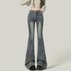 Femme Taille Haute Élastique Épissé Jambe Large Jeans Féminin Vintage Coupe Slim Évasé Pantalon Dame Bleu Noir Gris Denim Pantalon Grande Taille