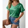 Haut en satin uni pour femmes printemps et été, ample, avec poche, manches courtes retroussées, chemisiers et chemises décontractés — acheter en ligne à petit prix sur Joom