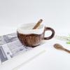 Tasse en céramique irrégulière pétrie à la main rétro, tasse en noix de coco, tasse à café, tasse à eau pour petit-déjeuner à l'avoine