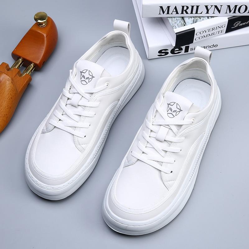Chaussures tendance printemps et été cuir respirant petites chaussures blanches chaussures à plateau à tête large pour hommes chaussures décontractées à plateforme à tête tordue pour hommes