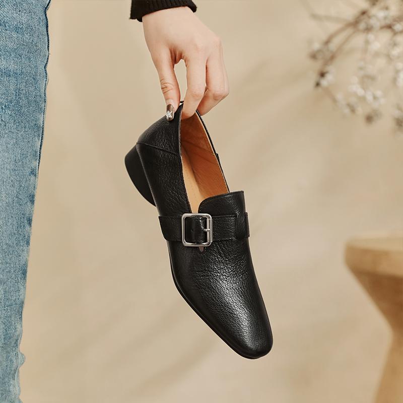 Mode 2025 Nouvelles Chaussures Mocassins Mode Femmes Chaussures Plates Talons Cuir Printemps Été Bout Rond Décontracté Escarpins Chaussures Femme Noir Taille 34-40