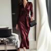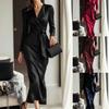 Robe Élégante et Gracieuse pour Femme - Manches Longues, Couleur Unie, Taille Nouée