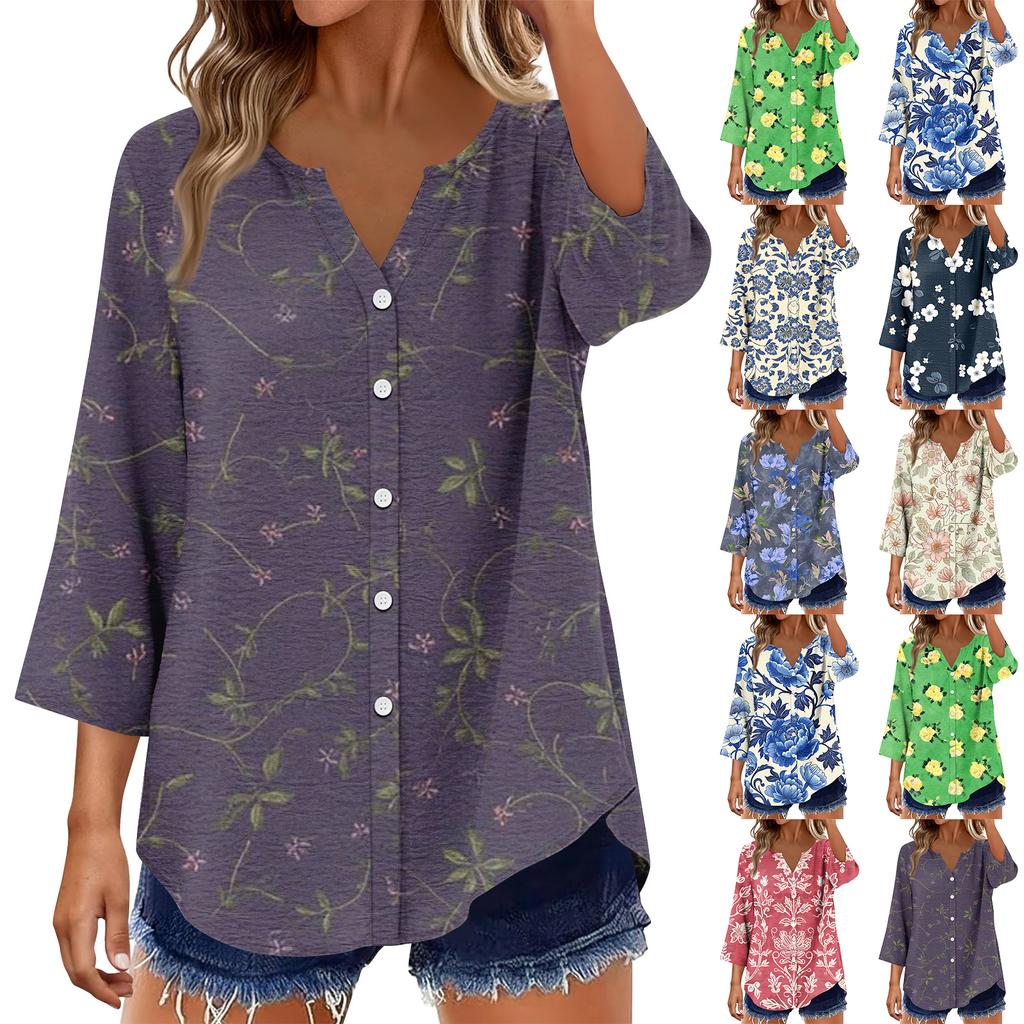 T-shirts à manches 3/4 pour femmes T-shirts graphiques Chemises Hauts basiques décontractés Pulls — acheter en ligne à petit prix sur Joom