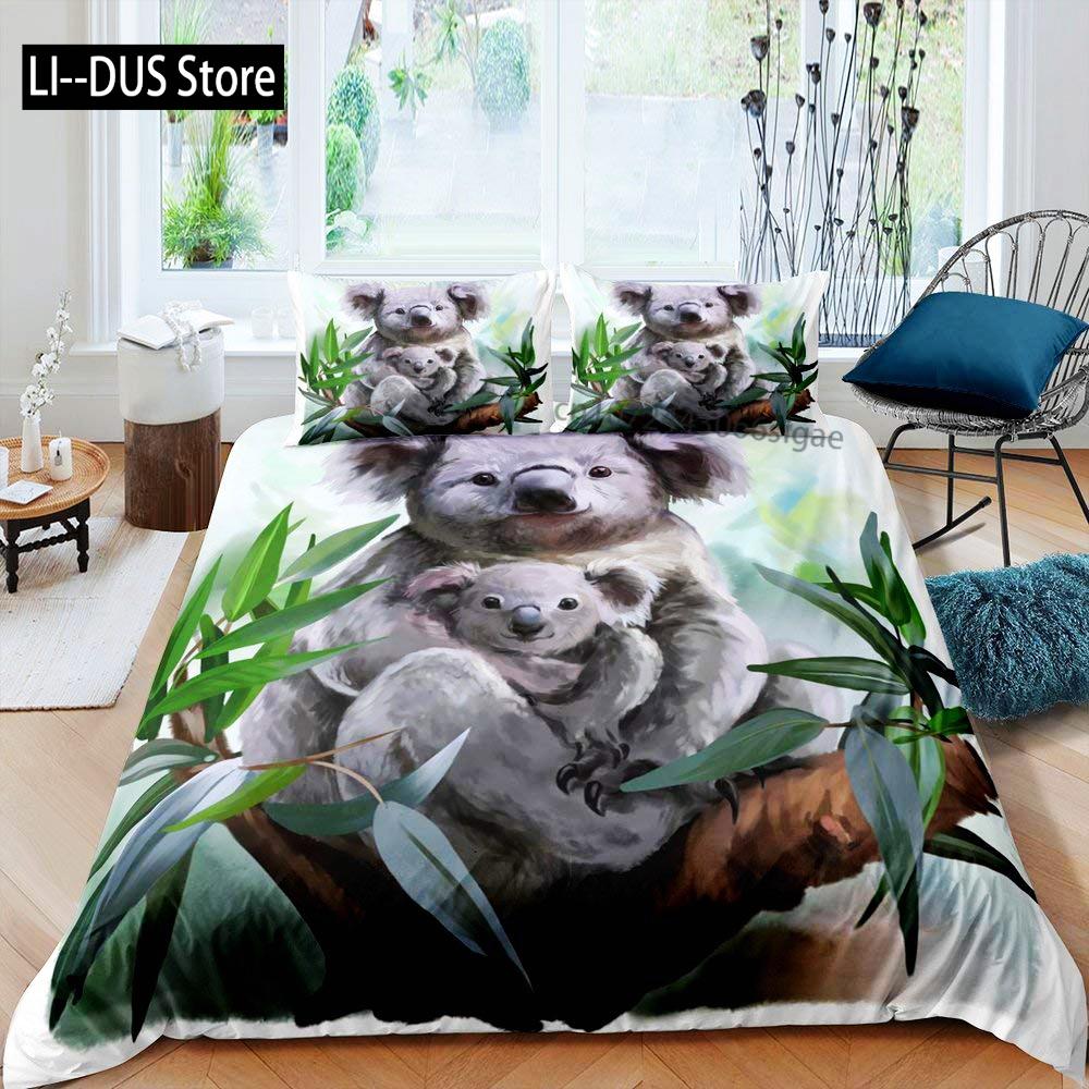 Kawaii Koala Bedding Set Full Size For Kids Boys GirlsCartoon Animal Comforter Set Quilt Duvet Green Leaves Bedroom Decor 3pcs — acheter en ligne à petit prix sur Joom