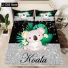 Kawaii Koala Bedding Set Full Size For Kids Boys GirlsCartoon Animal Comforter Set Quilt Duvet Green Leaves Bedroom Decor 3pcs