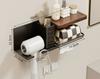 Wood Aluminum Bathroom Paper Holder with Shelf Bathroom Paper roll Holder Wall Mounted Towel Rack Toilet Paper Holder Tissue Box