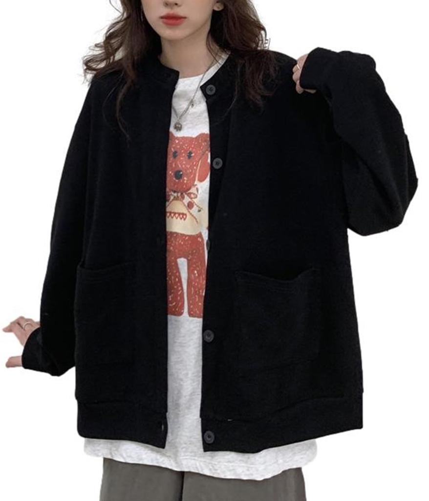 1/2plus Women's Cardigan Jacket, Cotton Blend, Loose Fit, with Pockets, Collarless, Size L (Black) — acheter en ligne à petit prix sur Joom